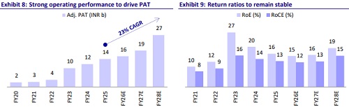* In FY26, the logistics business is expected to contribute INR7-8b in revenue and ~INR1b in EBITDA, driven by improved operations at Navkar and increased traction from recently added infrastructure.
