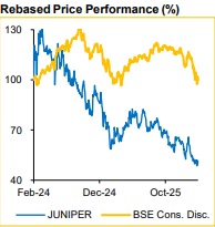 Investment View: We initiate coverage on JUNIPER with a BUY rating and an EV/Adj. EBITDA of 11.0x to arrive at a TP of INR 250, implying an upside potential 22.7%. We expect Revenue / Adj. EBITDA / PAT expected to expand at a CAGR of 18.3% / 21.2% / 30.8% over FY26E–29E, driven by, growth in keys, “Big-box” operating model, capex funding largely from internal accruals.