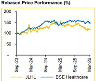 Investment View: We expect Revenue/EBITDA/PAT to expand at a CAGR of 26.3%/25.7%/28.5% over FY26-29E, driven by a bed capacity expansion of around 3x, an industry-leading payor mix with negligible government scheme exposure and a robust balance sheet, which leads to significant headroom for inorganic growth. Thus, we initiate coverage on JLHL with a BUY recommendation and target price of INR 1,645, with an upside of 37.1%, by valuing the company on DCF (including the BKC expansion plan), implying an EV/EBITDA multiple of 18.8/15.6 at FY28E/FY29E. DCF assumptions: Revenue Growth of CAGR 20.1% and EBIT growth of CAGR 21% considered from FY26–36E.