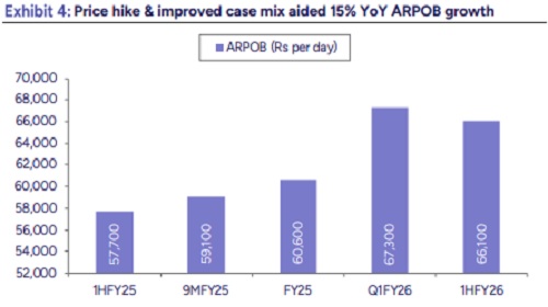 * ARPOB grew by 15% YoY aided by case-mix and price revisions