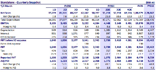 * We expect EBITDA margin of 8.6% (+20bp YoY/+10bp QoQ) and gradual improvement through the remainder of FY26.