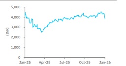 Steady volume growth; surge in copper price drives sales, albeit lower than peers: KEII delivered 20% YoY sales growth in C&W , which was lower than peers (Havells 33%, Polycab 56%), as capacity constraints in cables led to a volume growth of only 10% for KEII. The surge in copper prices (up 50% YoY) contributed to a 10% YoY value growth for KEII. Q3 also saw exports spike 95% YoY as KEII witnessed robust demand from Australia, UAE, the Middle East and Europe . Management expects FY26 sales to grow 20%, led by Q4FY26 growth of 25%+ YoY , thereafter maintaining 20% CAGR in the next 3 -4 years , led by growing exports, rising retail presence, and continued rise in domestic demand, led by new capacity.