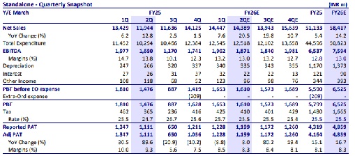 * We expect EBITDA margin to contract 80bp YoY on a high base of last year due to provision reversal.