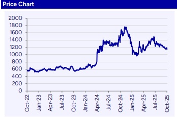 We revise our FY27/28E EPS estimates by -4.8%/-2.2% to reflect the ongoing slowdown in project execution and clearances. Kirloskar Pneumatic (KKPC) reported a 10.3% YoY revenue decline, accompanied by a 658bps YoY EBITDA margin contraction to 15.1%. Refrigeration demand was subdued due to delayed large project execution, while the gas compression segment experienced loss of market share amid heightened competition from new entrants offering lower pricing. Meanwhile, the Tezcatlipoca centrifugal compressor surpassed the 100 units milestone, and the company expects to strengthen its leadership in this category over the coming years. Additionally, KKPC has forayed into the commercial air-conditioning segment with the announcement of the indigenous Zephyros C system, which is expected to unlock new growth opportunities. Despite the weak quarterly performance, management remains confident of delivering ~15% YoY revenue growth and sustaining 18–20% EBITDA margins in FY26, supported by robust revenue visibility and strong order finalization prospects in H2FY26. We maintain our ‘Buy’ rating and roll forward to Sep’27E valuing the business at a PE of 33x Sep’27E (35x Mar’27E earlier) arriving at a TP of Rs1,620 (Rs1,636 earlier).