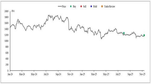 KPIT aims to expand into adjacencies such as off-highway, industrial, defense, and micro-mobility segments, while continuing to invest in AI-led solutioning and next-gen mobility technologies to sustain long-term profitable growth. H2FY26 is expected to perform better, driven by improved demand and execution compared to H1FY26, with a more favorable outlook from FY27 onwards. The company is valued at 35x P/E multiple on FY27E earnings, leading to a TP of Rs 1,350/share, implying an upside of 14% from the CMP. We maintain a BUY rating on the stock.