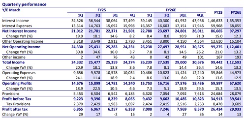 * Anticipate credit costs to rise ~15bp QoQ to ~2.7% (annualized) in 2QFY26.