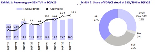 * LAURUS’ 2QFY26 revenue grew 35.1% YoY to INR16.5b (our est. INR15.6b). Synthesis business (29% of sales, small molecules) was up 58% YoY to INR4.7b, led by expansion of the project funnel and a healthy client base.