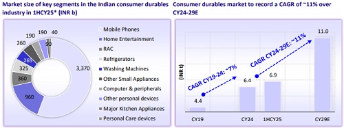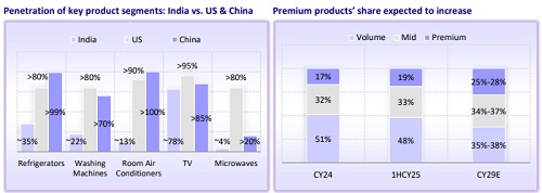 * India’s young, urban, and affluent consumers are increasingly seeking advanced, connected, and stylish appliances. The premium segment in the appliances and electronics market is projected to rise to 25-28% by CY29 from ~19% in 1HCY25.