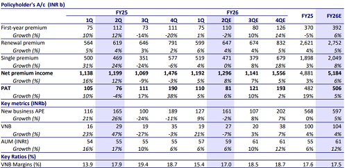 * On a YoY basis, VNB margin is anticipated to decline, led by a loss in GST input credit on policies.