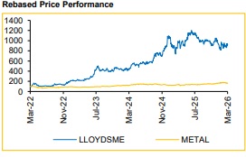 Investment View & Target Price We maintain our BUY rating on LLOYDSME with no change in target price of INR 1,730, representing a 36.1% upside. Our valuation incorporates a structured capital allocation towards the Virtus JV (VLMH), modelled as a long-term investment. We project cumulative investments starting at INR 3,500 Mn in FY26E, scaling up to INR 14,000 Mn by FY30E, in addition to the initial outflow (to buy equity) of ~USD 14.7 Mn (49% of USD 30 Mn). This capital functions as a yield-generating instrument, delivering a 10% annual interest return that accrues directly to PAT, while our standalone Revenue and EBITDA estimates remain robust and unchanged.