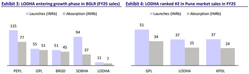 * Unlike other peers, LODHA, while not launch-dependent, continues to actively introduce new projects/phases and enter new markets. In 1HFY26, it acquired projects with a GDV of INR250b across MMR, Pune, and Bengaluru, with MMR contributing the highest GDV of INR141b. LODHA has also entered the growth phase in Bengaluru and aims to initiate a pilot in NCR by FY27.
