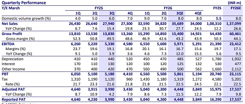 * EBITDA margin expected to remain constant YoY at 11% in 3QFY26.