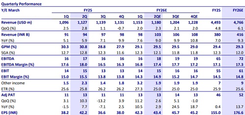 * LTIM is expected to report ~2.0% QoQ CC growth, aided by ramp-up of agri-deal, top account pass-through behind, and cross-currency gains.