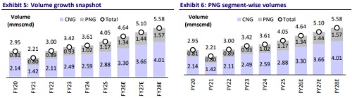 * We expect an 11% CAGR in volume over FY25-28, driven by multiple initiatives implemented by the company. These initiatives include collaborating with OEMs to drive conversions of commercial CNG vehicles and providing guaranteed price discounts to new I/C-PNG customers.