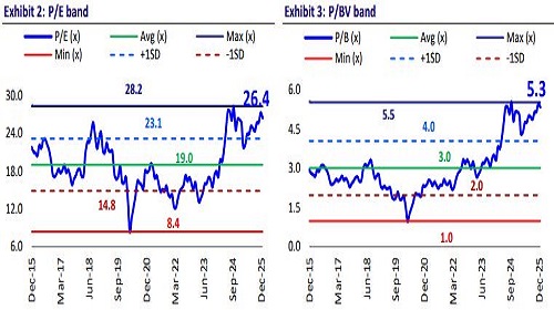 - MM likely to continue to outperform industry growth: MM continues to have a healthy launch pipeline, even in the long run, and targets to launch seven ICE SUVs (two mid-cycle enhancements), five BEVs, and five LCVs (of which two would be EVs) by 2030. Of this, in CY26, it targets to launch three ICE SUVs (two mid-cycle enhancements), two BEVs, and two LCVs (of which one would be EV in the <3.5T segment). Driven by new launches, we expect MM to continue to outperform industry growth. We have assumed MM to post a 14% volume CAGR in UVs over FY25-28E.