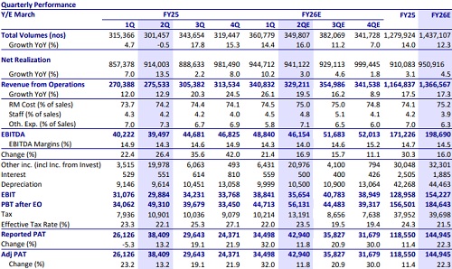 * Overall, we expect auto segment margins to decline 90bp YoY to 8.6%. Tractor segment margins are likely to remain healthy (+130bp YoY to 18.8%).