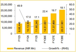 Revenue expected to grow 20.0% CAGR over FY25–28E