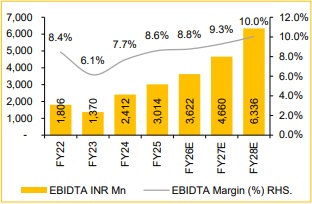 EBITDA anticipated to by 28% CAGR over FY25–FY28E