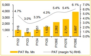 PAT to grow by 37% CAGR over FY25–FY28E