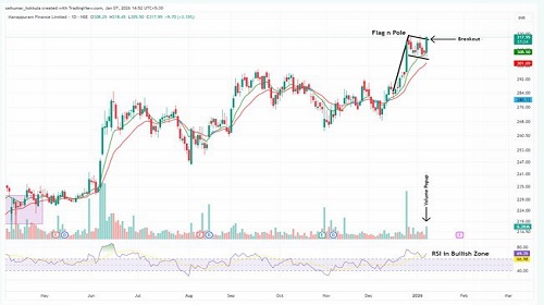 * Currently the stock has given bullish chart pattern formation which resemble as Flag N Pole pattern breakout on daily chart.