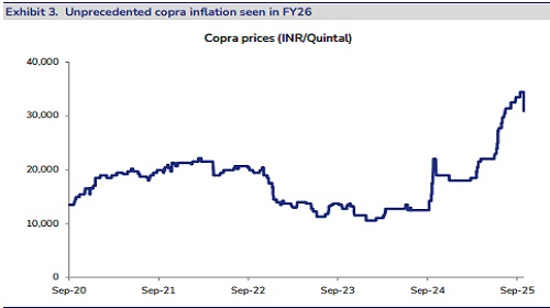 * Revenue momentum remains strong led by strong pricing growth and high-single-digit UVG: Marico’s consolidated revenue is expected to grow in the 30s led by strong pricing-led growth in Parachute and Saffola edible oils, better-than-envisaged recovery in VAHO and sustained momentum in Foods and Premium personal care portfolio. On the domestic front, c.30% of its domestic business has benefitted from GST rate rationalisation. Despite disruption in trade channels and CSD, India business volume grew in high single digit but was a tad lower vs. 1QFY26 (we estimate UVG of c.7-8% vs. c.9% in 1Q). We estimate sales growth of c.30% YoY for 2QFY26E. International business momentum also remained healthy with constant currency growth in the 20s led by Bangladesh and MENA.