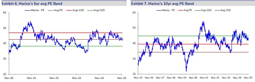 Marico’s 2QFY26 earnings print inline with pre-quarter update. Domestic revenue growth of 35% (UVG of 7%) was best in class among the Staples peers. Volume growth was driven by new franchises (Foods & Premium Personal Care portfolio) and VAHO, while value growth was boosted by steep pricing growth in Parachute/Saffola edible oils. Margin compression was predominantly driven by copra inflation led impact on Parachute profitability. Going ahead revenue momentum is likely to remain healthy (25% growth for FY26E, implies 20%+ growth in 2H), gross margins to improve QoQ benefiting from copra moderation (15% from peak) resulting in double digit EBITDA growth for 2H (vs. mid-single digit in 1H). Marico has navigated inflation cycle well by demonstrating strong pricing power in core. Moreover it also has other margin levers (margin expansion in Foods/D2C & recovery in VAHO) which have helped to cushion some impact in FY26.With scale & increased focus on profitability in this portfolio along with normalisation of Parachute margins, Marico’s overall margins could be higher (vs. historical margins) over next 2-3 years. Marico remains our preferred pick in the space. Maintain BUY with revised TP of INR 850 (48x Dec’27E EPS).