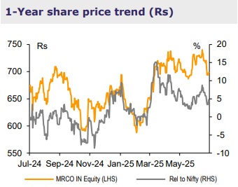 We maintain BUY with Jun-26E TP of Rs810, on 50x P/E. We see improved execution ahead helping in driving growth and better margins which would enable the company to see ~12% earnings CAGR over FY25-28E. The new portfolio (1/4th of consolidated revenue) in India and internationally is aligning with consumer needs, enhancing longevity of growth. In India, the new-age portfolio in food and digital brands accounts for 22% of revenue. Internationally, Marico has created a premium portfolio, which represents 29% of sales. We see execution in this portfolio being key for its aspiration to double revenue by 2030 (~15% CAGR). In FY25, the company’s earnings grew by 10% which helped with a better dividend and return profile (ROE ~42%, +3ppt YoY), although higher working capital needs kept the OCF flat YoY.
