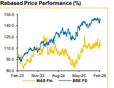 MASFIN’s profitability is expected to improve in the medium term, driven by asset mix optimisation, higher direct originations and prudent leverage. Portfolio yields are projected to increase, from ~12.4% in FY26E to ~12.8% by FY28E, led by higher exposure to high-yield loans and increase in direct retail business. Direct retail assets is anticipated to increase, from ~66% in FY25 and to ~70–75% by FY28E, supporting higher NIMs. Improved underwriting policies driven by implementation of new LOS and portfolio seasoning is projected to drive lower credit cost (on average Loans) from ~1.7% in FY26E to ~1.4% in FY28E. We project the Average RoA to remain sustainable at ~3.0% (over FY26E–FY28E), while RoE would improve, from 13.2% in FY26E to 16.0% by FY28E, driven by higher leverage (from ~4.5x in FY25 to ~5.4x by FY28E)