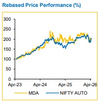 Profitable Growth Led by Acquisitions and Mix Gains: The strong financial outperformance in 9MFY26 has been driven by strategic acquisitions and favourable product-mix shifts. The acquisition of Flash Electronics (49% stake, at INR 13,720 Mn in January 2025), with Flash delivering INR 15,370 Mn revenue at 14.5% EBITDA margin in FY25 and a breakout 18.4% EBITDA margin in Q3FY26, materially enhances MDA’s EV powertrain credentials. Consolidated EBITDA margin improved ~220 bps over FY21–FY25 and we expect a further ~54 bps expansion over FY25– FY29E to ~12.0%, driven by operating leverage, premium product scaling, and rising JV contribution. Key subsidiaries and associates now operate at 14–20% margin, as compared with the group's ~11% historical margin, reflecting a structurally improving profitability mix.