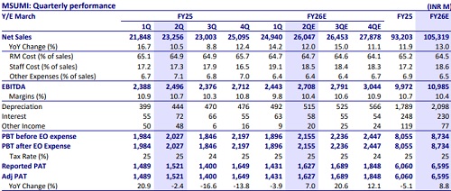 * EBITDA margins to gradually improve QoQ as plants ramp-up. Expect margins to be down 30bp YoY at 10.4%.
