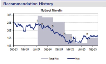* Valuation and view: Given the steady improvement in CEs and revival in growth led by non-MFI products, we expect MML to deliver RoA of 2.1%/3.6% for FY26E/FY27E. We upgrade the stock to BUY with a revised TP of INR 190 valuing at 1.0x FY27E BVPS (earlier 0.8x FY27E BVPS).