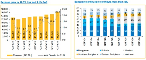 * PAT grew by 30.1% YoY and 32.1% QoQ to INR 2.6 Bn (vs CIE estimates of INR 2.2 Bn), with a PAT margin of 15.8% as compared to 14.6% in Q2FY25