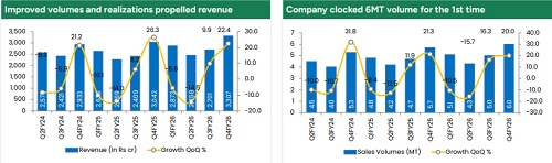 * Premiumisation Strategy Success: Industry-leading premium products maintained a record 43–44% share of trade volumes. This strategic focus, alongside better-than-expected realizations of Rs.5,065 per tonne, significantly supported the record EBITDA performance.