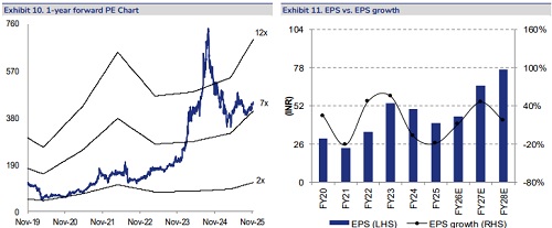 Oil India’s 2QFY26 standalone EBITDA, at INR 23.1bn, was better than JMFe/consensus of INR 21.1bn/INR 22bn led by higher transportation income at INR 4.5bn vs. JMFe of INR 1.6bn and aided by slightly better crude realisation but partly offset by lower gas realisation and oil and gas sales volume. However, PAT, at INR 10.4bn, was significantly lower than JMFe/consensus of INR 15.5bn/INR 15.4bn, due to sharply higher dry-well write-off of INR 9.8bn vs. JMFe of 1.6bn. NRL’s 2QFY26 GRM was strong at USD10.6/bbl (before excise duty benefit), resulting in higher EBITDA of INR 9.9bn. Consolidated EBITDA was also higher QoQ at INR 32.9bn in 2QFY26 (vs. INR 28.1bn in 1QFY26) aided by higher EBITDA from NRL. We maintain BUY (unchanged TP of INR 515) based on our Brent crude price assumption of USD 70/bbl (while CMP is discounting ~USD 60/bbl of net crude realisation). Further, Oil India’s earnings is likely to grow at a robust ~16% CAGR over the next 3-5 years driven by: a) strong 20-25% output growth in the next 1-3 years aided by commissioning of the Indradhanush gas pipeline; and b) expansion of NRL refinery from 3mmtpa to 9mmtpa. Further, Oil India is also a robust dividend play (4-5%). At CMP, Oil India trades at 6.1x FY28E EPS and 1.0x FY28E BV.