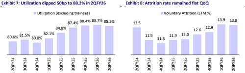 * Wage hikes effective from 1st Oct 2025 for all employees are expected to impact margins by 180bps in 3Q; however, ~80-100bp of this impact is expected to be offset through utilization, offshoring, and subcontractor rationalization.