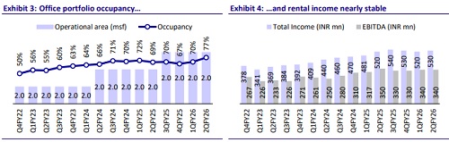 * The company reported rental income of INR5.3b, up 10% YoY. In 1HFY26, rental income stood at INR10.4b, up 7% YoY.