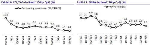 * 90+ dpd remains steady at 0.8% for overall retail AUM. Growth business (Retail and Wholesale 2.0) gross credit costs rose ~30bp QoQ to 1.8% (PQ: ~1.5%). The sequential increase is because 1QFY26 had a net positive impact of ~36bp on credit costs due to ECL rebalancing. Total ECL/EAD declined ~30bp QoQ to ~2.1% of the AUM.