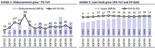 Disbursements rise ~7% YoY; loan book grows ~2% QoQ