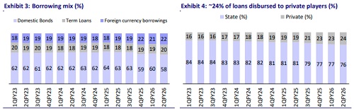 * The renewables segment in the loan mix was stable at 15% (PQ: 15%). Disbursements to the infrastructure sector formed ~4% of the total disbursements in 2QFY26.