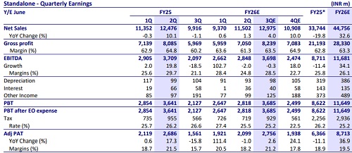 * Sales are expected to grow ~4% YoY in 3QFY26.