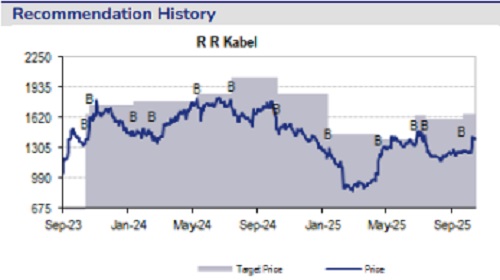 RR Kabel’s 2Q performance was ahead of expectations on all fronts, driven by volume growth (+16% in 2Q, +12% in 1H) and value growth in the cables & wires (C&W) segment, resulting operating leverage benefits, and an improved revenue mix. The FMEG vertical, on the other hand, witnessed a muted quarter owing to industry-wide headwinds, especially w.r.t. fans, while lighting was a relative outperformer. The management reiterated its guidance, and indicated that (1) 2H volume should be better than 1H, putting the company on track to achieve 18% volume growth in FY26E, as guided, and (2) it is confident of an improvement of 100bps in FY26E C&W EBIT margin and the aspiration is to get to 10.5-11% by FY28E, driven by a changing product mix, as benefits of the company’s INR 12bn capex (80% of which is targeted towards cables) come in. We revise our FY26-28E EPS estimates by 2-4%, and maintain BUY with a target price of INR 1,720 (1,650 earlier), valuing the stock at 35x Sep’27E EPS.