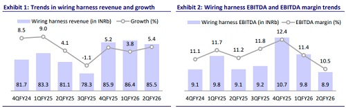 * Samvardhana Motherson’s (SAMIL) 2QFY26 adjusted PAT at INR8.6b was well above our estimate of INR6.3b, growing 15% YoY. Its margin has remained stable YoY at 8.7% despite the adverse global macro headwinds, which is commendable.