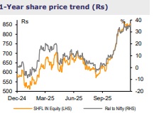 We are not building in the optionalities likely to play out for SHFL over the medium term, and our FY27-28 estimates are largely changing owing to the capital infusion driving down the interest cost. This leads to FY27E/FY28E BVPS increasing 24%/20%, respectively. We reiterate BUY on the stock, while raising our TP (now Dec-26E) by 23.5% to Rs1,050 (from Sep-26E TP of Rs850), implying Dec-27E P/B of 2.0x.