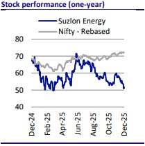 * India’s installed wind base stands at 52 GW, with orders placed for 24.4 GW (SUEL holding ~6.2 GW or ~25% share). An additional 17.6 GW of orders are yet to be placed, and around 6 GW is pending tendering.