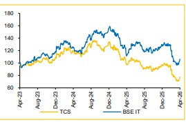 View & Valuation: TCS delivered a strong Q4FY26 beat, with resilient execution and robust deal wins (USD 12 Bn Q4 TCV; USD 40.7 Bn FY26) reinforcing growth visibility despite a soft macro backdrop. AI is emerging as a key growth driver, with revenues at a USD 2.3bn annualised run-rate and deployments scaling up across enterprises into FY27. Although the 26% EBIT margin target has shifted to the longer term, TCS’s strong profitability continues to provide room for reinvestment in AI, data centres and strategic growth initiatives. We believe, TCS to deliver Revenue/EBIT/PAT CAGRs of 8.6%/10.0%/12.3% over FY26– FY29E, driven by improving demand conversion and operating leverage. Hence, we maintain our BUY rating with a target price of INR 3,350, based on FY28E EPS of INR 176.2 in line with our earlier upward revision of the target price from INR 3,275 to INR 3,350 in the Q4FY26 preview