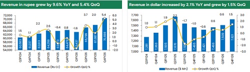Strong Financial Performance & Margin Expansion: TCS delivered a solid Q4 FY26 performance, with revenue at ?70,698 crore, reflecting steady growth despite global uncertainties. Net profit rose 12.2% YoY to ?13,784 crore, supported by operational efficiencies and better cost control. A key highlight was operating margin expansion to 25.3%, a four-year high, driven by improved utilization, pyramid optimization, and higher realization from premium services. For the full year, margins remained strong at 25%, showcasing consistency. Despite currency headwinds in dollar terms, the company maintained profitability through disciplined execution, indicating resilience in a volatile macro environment.