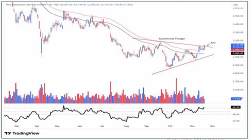 Buy Tata Consultancy Services Ltd CMP 3148.00 Buy Price 3148.00 Target 3304.00 Stop loss 3070.00 Holding Periond 1 Month
