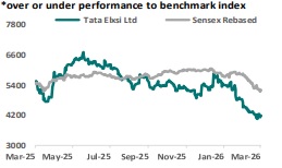 We believe, Tata Elxsi is entering a recovery phase, driven by strong transportation growth from SDV-led deal ramp-ups, new OEM wins, & expansion into off-road segments. Continued investments in SDV, electrification, ADAS, & connected platforms support medium-term growth. Margins may face near-term pressure from wage hikes & Chinese competition, but rising utilization & operating leverage provide expansion potential without large-scale hiring. Slow OEM decision-making in Europe, the US, and Japan may delay deals, while Media & Communication and Healthcare are expected to recover gradually from Q4FY26. Despite macro and competitive pressures, Tata Elxsi’s domain expertise, design-led approach, and offshore execution position it for steady recovery, Hence, we value TELX at 33x FY28E EPS and recommend Buy rating with a target price of Rs.5,135 at CMP.