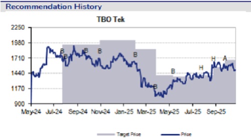 TBO Tek’s (TBO) consol. GTV growth in 2Q accelerated to 12% YoY from just 2% YoY in 1Q, inline JMFe. Acceleration was driven by both H&P growth improving to 20%+ from 12%/17% in 1QFY26/4QFY25 and air trends turning flattish YoY vs. low-teens decline in the prior 2 quarters. We expect organic GTV growth trends in both these segments to be stable in the near term in the absence of any macro challenges. While reported EBITDA of INR 881mn was c.2% ahead of JMFe, adjusted for one-off M&A expense (related to Classic Vacations acquisiton) of INR 132mn, the beat was 17%. Importantly, the management noted that SG&A expense growth is likely to decelerate henceforth on account of upfronting of most sales headcount expansion related costs. This, in turn, should enable the much-awaited operating leverage to play out (on an organic basis) latest by 4QFY26, in our opinion. Valuations too appear attractive as the stock has given up most of the early gains post Classic Vacations M&A announcement. We, therefore, upgrade TBO to BUY with a Sep’26 TP of INR 1,750 (unchanged multiple of 40x EPS).