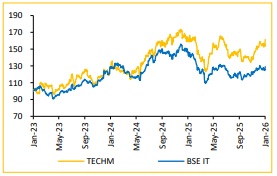 View & Valuation: TECHM is positioning itself as a future-ready partner by embedding AI across its entire service portfolio. We believe, the company is gaining market share in the Communication vertical supported by its differentiated offerings and strong vendor-consolidation opportunities. With increased clarity post the company’s outlook on industry-leading growth, as well as continuity in margin expansion led by project Fortius, gives us confidence to revise our estimate upwards. Thus, we expect Revenue/EBIT/PAT to expand at a CAGR of 8.8%/27.5%/22.1%, respectively, over FY25–FY28E. We have revised our P/E multiple to 24.0x (from 22.0x), resulting in an upward revision of our target price to INR 1,925 from INR 1,730, while maintaining our BUY rating.